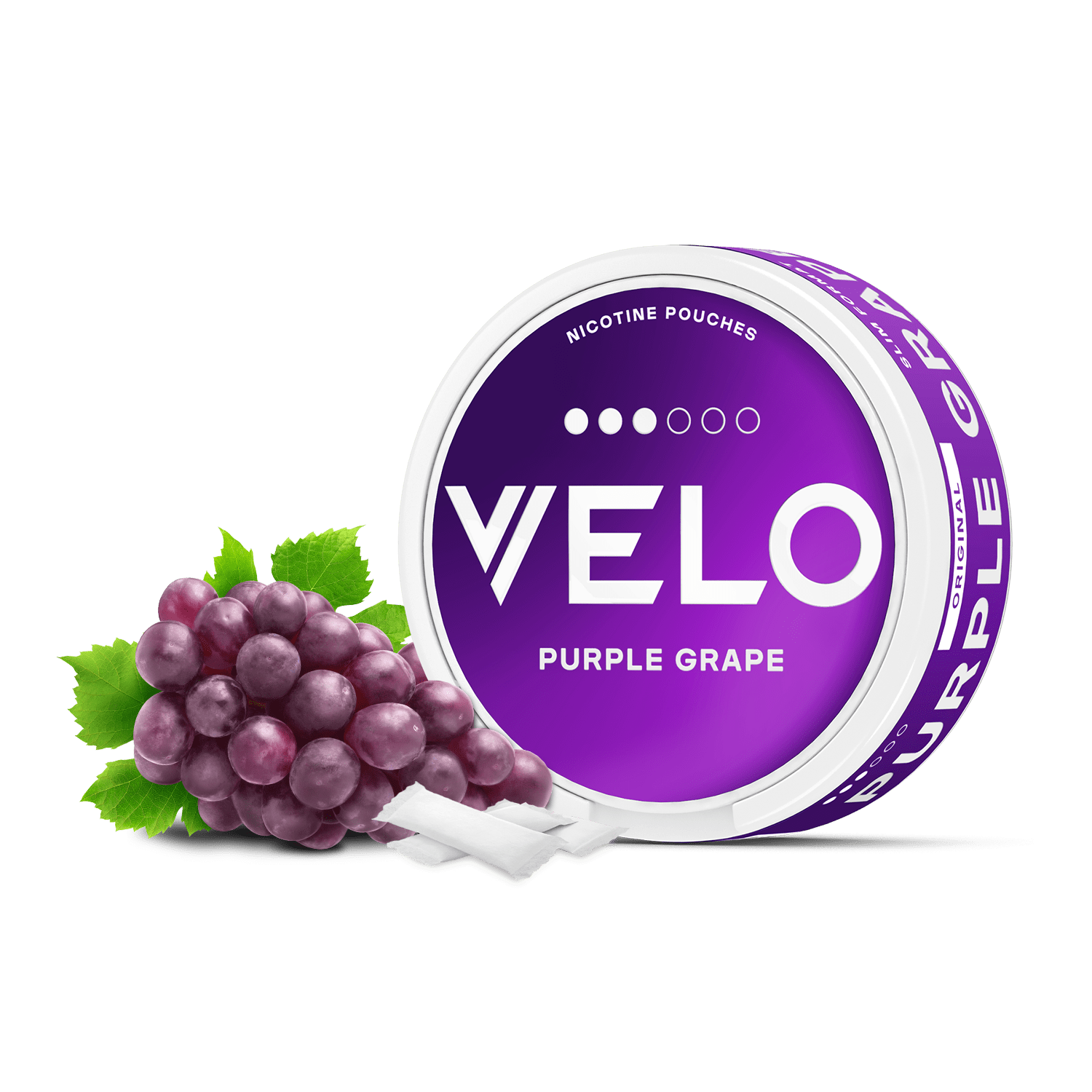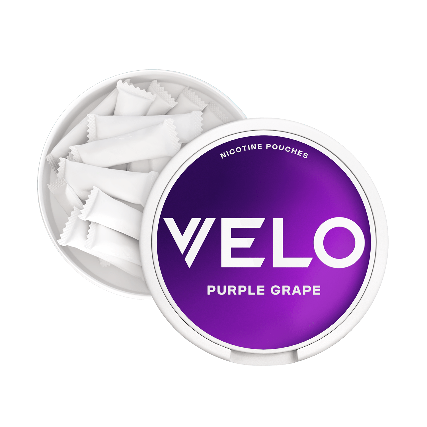 Las bolsas de nicotina Groovy Grape están disponibles en una concentración de 6 mg, ideal si es tu primera vez usando VELO. De tamaño Mini, con bolsas y un envase más pequeño para llevar contigo a donde vayas.